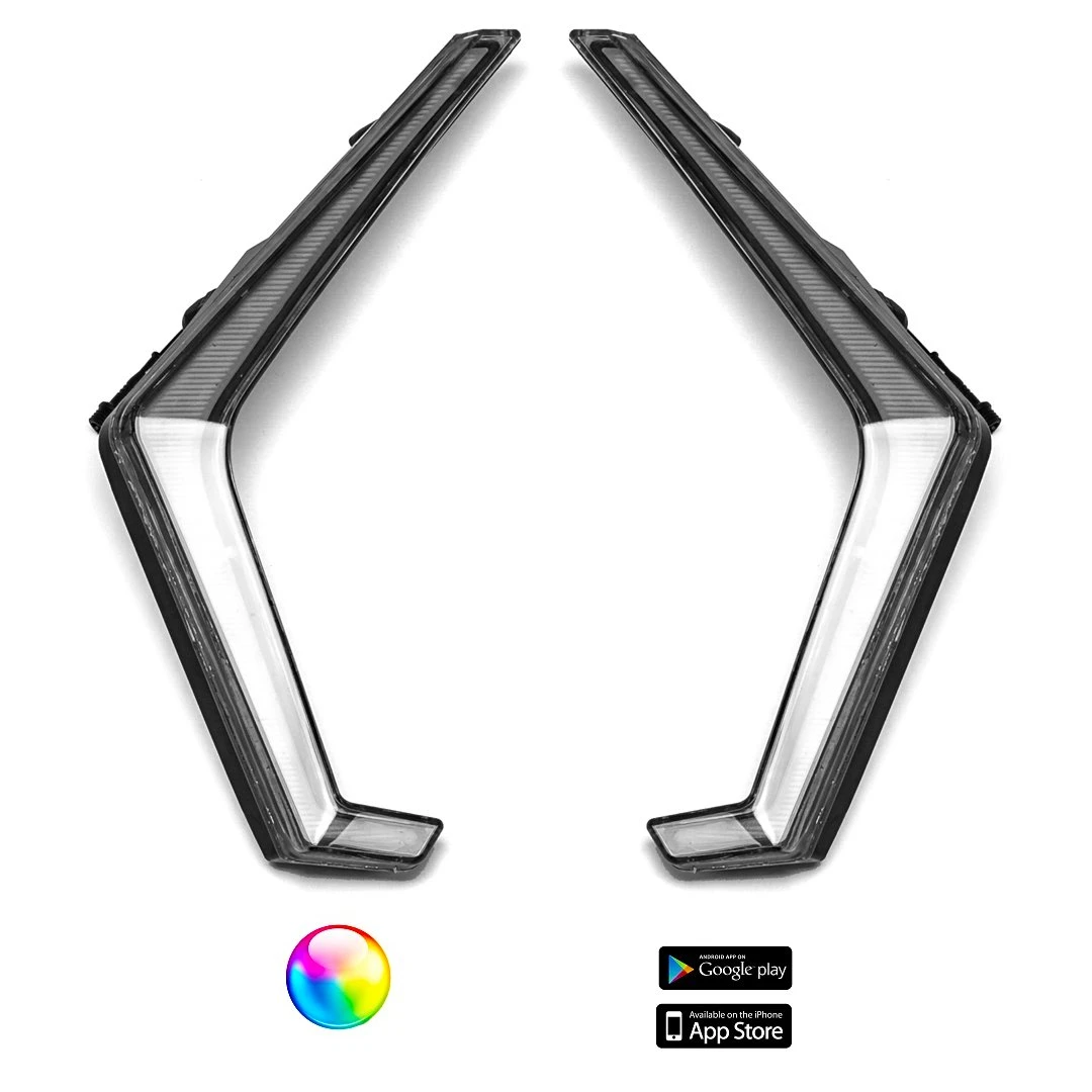 The 5150 Whips Polaris RZR Turbo S Fang Lights are the perfect addition to Polaris RZR Turbo S with the Bluetooth functionality that allows for color control through your smartphone and has a multitude of colors options and various functions.