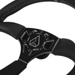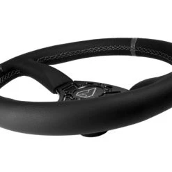 The Assault Industries 350R steering wheels are 20mm larger than the Tomahawk and Ballistic D wheels and has a depth of 60mm. The steering wheel features a thicker, more robust grip and is contoured for comfort. The 2-toned 350R steering wheel is crafted with black and gray genuine leather, with gray stitching.