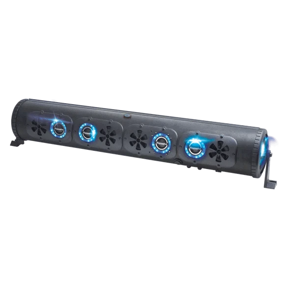 The Bazooka® Bluetooth® Party Bar G3 with RGB Illumination is the ultimate offroad and outdoor entertainment system. Features marine-grade speakers, including end-loaded woofers and front firing tweeters, all powered by a 450-Watt, class-D amplifier.