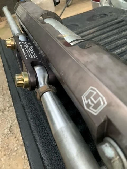Are you tired of trying to keep your inner clevis tight on your CanAm Maverick X3? We have a solution for you! Our Billet Steering Flag was designed to give peace of mind knowing you won’t have a clevis come loose and cause a failure. Our Flag incorporates the clevis all in one machined part. We have also improved the positioning to help eliminate bump steer. This was used in KOH by top professionals. This is a must if you run Heim Joints on your Tier rods. This will work with any aftermarket Tie Rod using 5/8″ Heim joints and the stock rack.