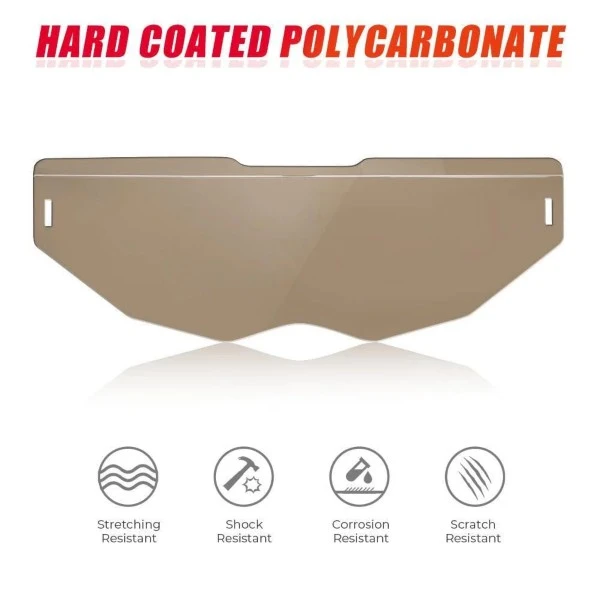 KEMIMOTO half windshield for x3 is made of 1/4 inches high quality durable polycarbonate material, which is 250 times stronger than glass and 25 times stronger than acrylic. The strength and stability of x3 front windshield are enhanced greatly.