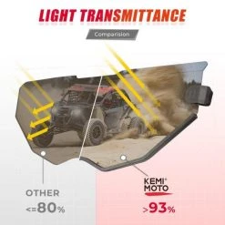 Kemimoto X3 windshield is made of polycarbonate that is a durable material with high impact resistance, unlike most thermoplastics, polycarbonate can undergo large plastic deformations without cracking or breaking, it will ensure your and your passengers safe, and no more hassles of buying a new one. PC is stronger and will hold up longer to extreme temperature, even go to the desert or driving in winter, the windshield won’t be yellowing or cracking down.