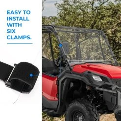 Easy Installation: Durable windshield clamps can be securely fastened to the windshield pre-drills. It’s easy to install or remove the Kemimoto Full Windshield for Pioneer.