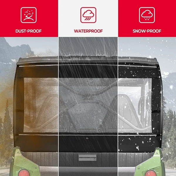 Easy to install:Â Easy to install nylon rear wind guard and vinyl window. Made from water and UV-resistant, heavy-duty, 1680 denier nylon.