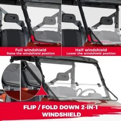 Kemimoto Polaris Ranger 1000 / XP 1000 / Crew 2017-2023 2-IN-1 Flip Up Full Windshield