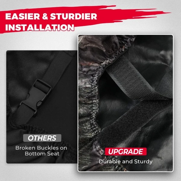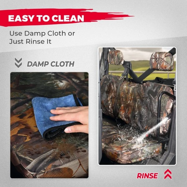 KEMIMOTO UTV seat covers are made of 1680D Oxford cloth with high scratch resistance. Its wear- and tear-resistant characteristics mean you no longer have to worry about your seat being hurt by your beloved dog’s sharp claws when you travel. KEMIMOTO seat covers can also make your worn seat look like new again.