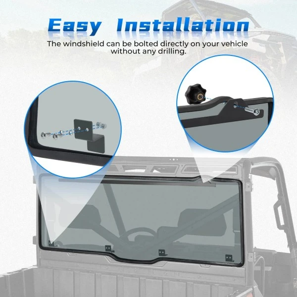 Kemimoto rear window with black seal strip and tint glass can perfectly match other accessories of your vehicle, providing a great look of your UTV.