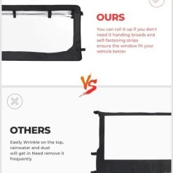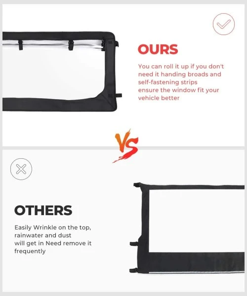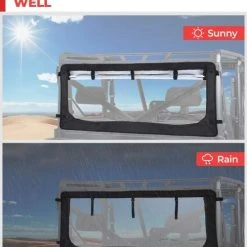 THIS REAR WINDSHIELD IS SOFT, LIGHT, EASILY INSTALL AND ROLL DOWN WITH THESE UPDATED DESIGNS. PROTECTING YOUR VEHICLE WELL AND KEEP YOU OUT OF RAIN AND DIRT WHILE RIDING OUTDOOR AFTER INSTALLING IT.