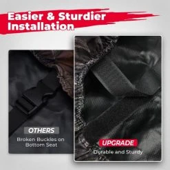 The buckles of the bottom cover are UPGRADED to hook and loop fasteners to make your installation and removal easier, say goodbye to broken buckles on bottom seat part. Thanks to1680D oxford fabric, you just need to wipe rain, mud, snow and your dog’s footprints right off with a damp cloth or spray hose.