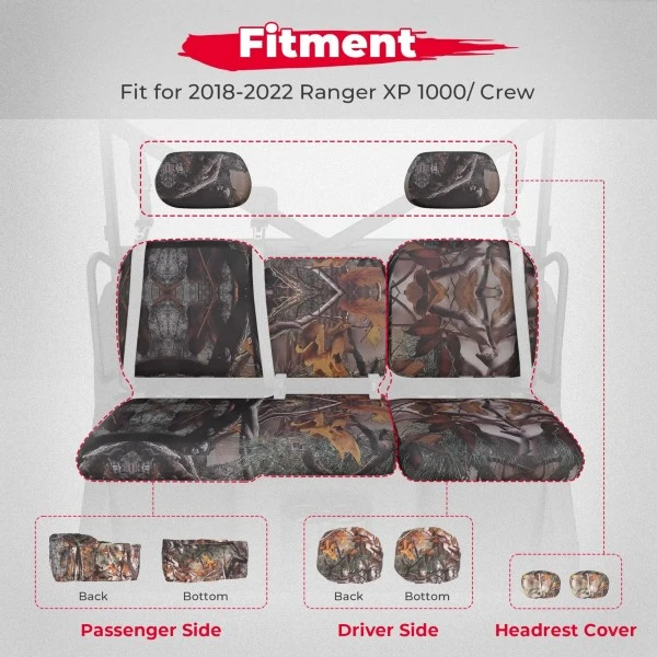 Kemimoto Polaris Ranger XP 1000/Crew 2018-2023 Seat Covers Camo Upgraded