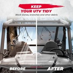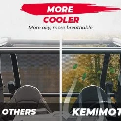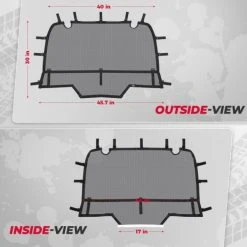 This rear window net keeps air circulation while keeping the driver and passengers free from branches, debris, mud. Remind that remove the windshield when towing.