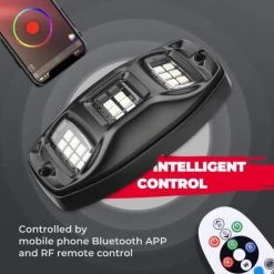Kemimoto car rock lights are equipped with an RF remote control and can also be remotely controlled with mobile Bluetooth APP, including many blinking/gradient modes and timing modes. Compatible with iOS 7 or Android 4.3 or above.