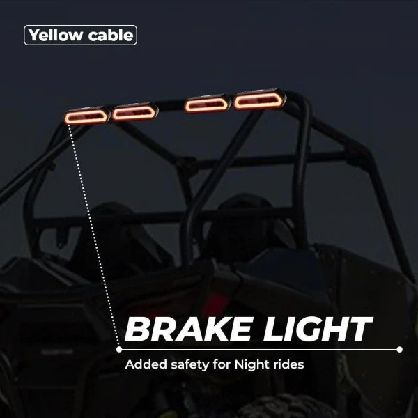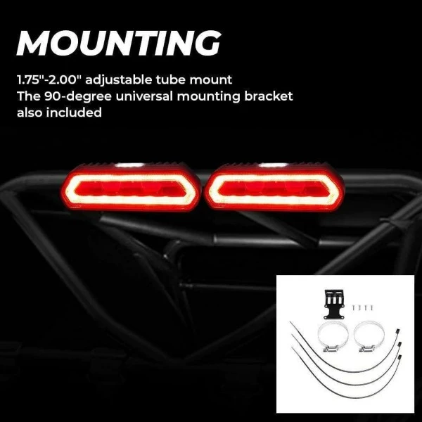 2 Halo Color and 5 Modes Strobe:UTV chase led tail light can change in 2 halo color, red and white. And with 5 working modes: strobe, courtesy, reverse, running & brake. When you brake, the light automatically displays highlight red, if the state is driving, the light is lowlight red. The light is white when reversing.