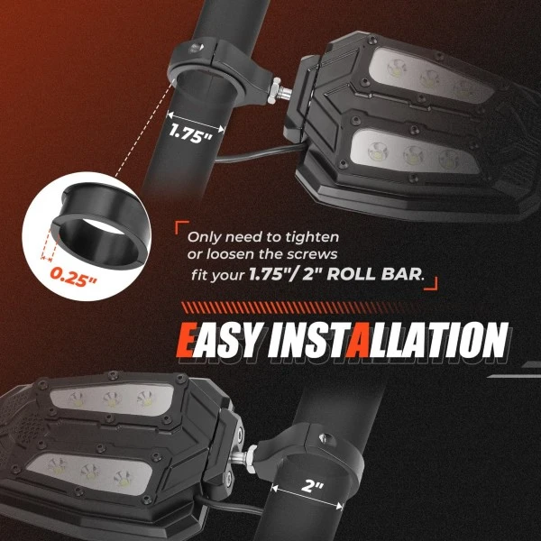 Kemimoto Universal Side Mirror with LED Spotlight for 1.75″ – 2″ Roll Cage