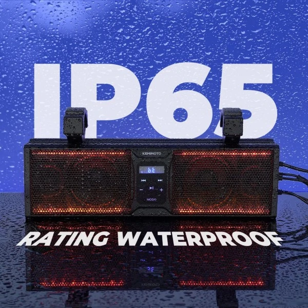 KEMIMOTO Sound Bars carry IP65 enclosures means dustproof level is 6(Level 6 Max) while waterproof level is 5(Level 8 Max), which offer