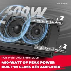 The two 4” Full-range Speakers and two 1” Soft Dome Tweeters are powered by a high-performance Built-In Class A/B Amplifier with optimized bass performance.