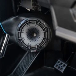 Polaris 2014-2020 RZR UTV Tuned Audio Package: Three Speaker 800 Watt STAGE 3 Audio System designed to integrate into the vehicle’s RIDE COMMAND source unit to control the system which includes two power amplifiers powering 2 compression horn speakers, 10 inch subwoofer in a ported enclosure. All necessary mounting panels and harnessing are included.