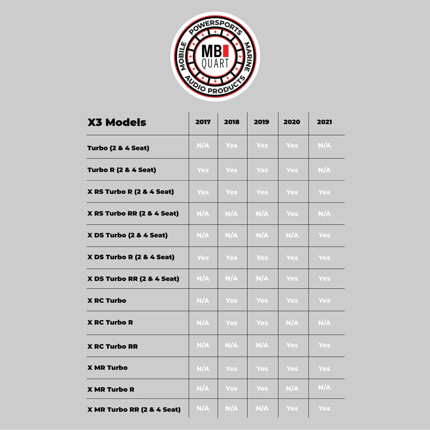 | Marine Grade Protection / IPX Rating | IPX67. MB Quart has engineered a select group of UTV-tuned audio systems that are perfectly designed for the CAN-AM Maverick, Maverick X3, X3 MAX, Defender, Commander and Maverick Trail. It is essential that every component installed in a CAN-AM be torture tested to be as reliable as it can be in such a harsh environment. |