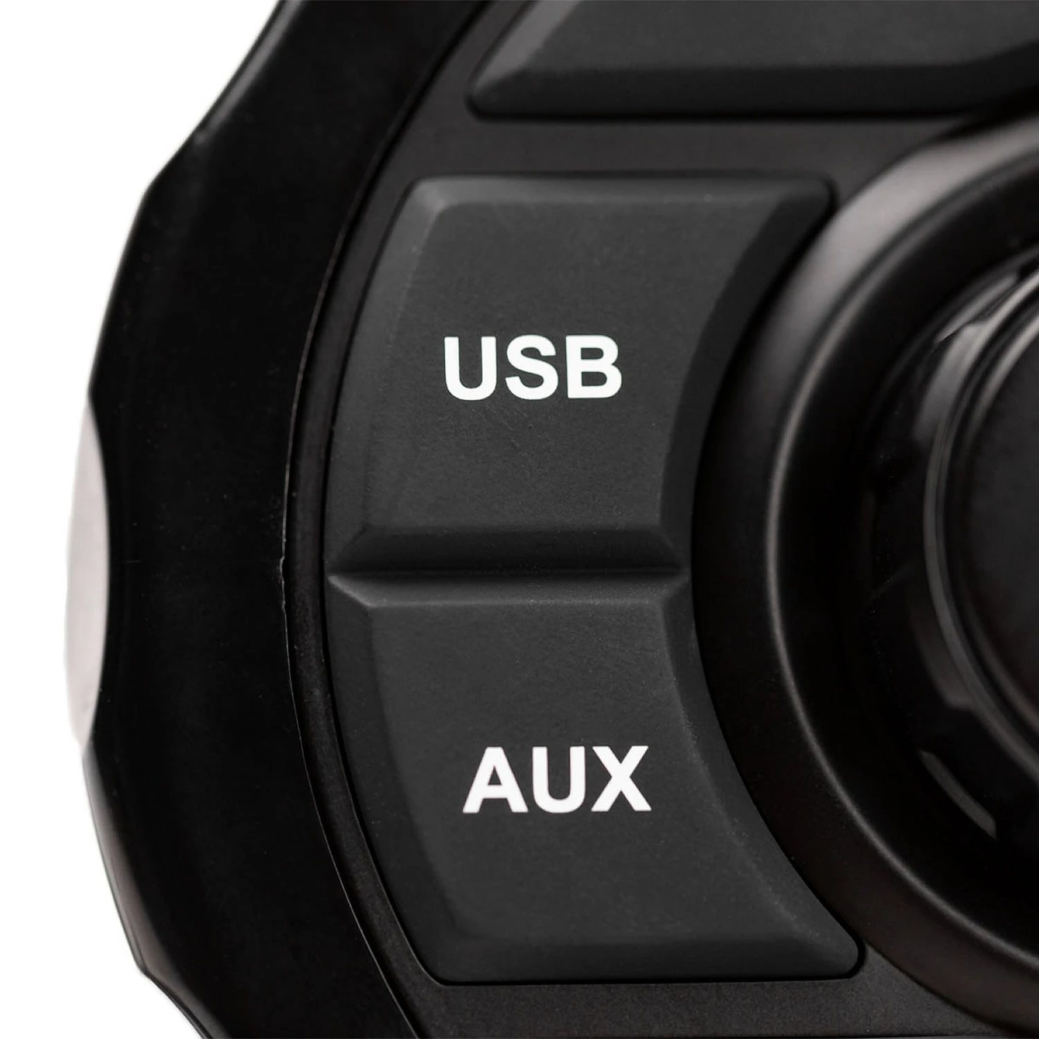 UTV Tuned Audio Package: TWO SPEAKER 160 Watt AUDIO SYSTEM with a Bluetooth source unit and 8 inch rear speakers with roll cage mounted enclosures.