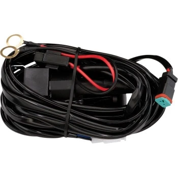 - Includes mounting brackets, stainless hardware, deluxe wiring harness with DT sealer connectors, relay, fuse, ring terminals and lighted knock-out style in-dash rocker switch