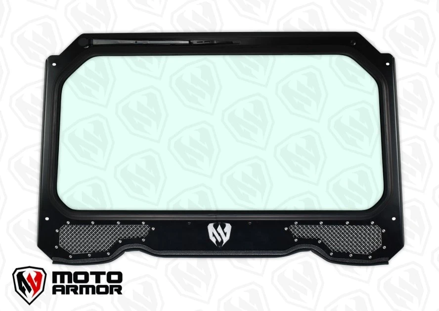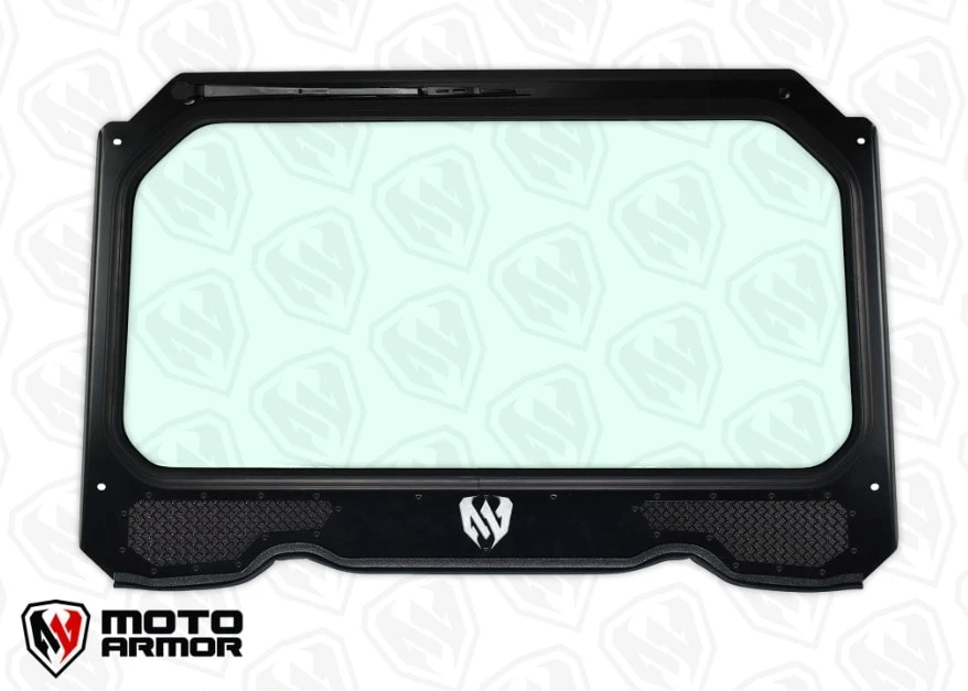 Moto Armor Full Glass Windshield with vents. Large viewable area provides an easy driving experience. Laminated Automotive Glass DOT for performance and safety.