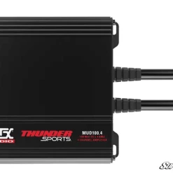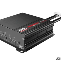 If you want to blast your tunes so you can hear them when the pedal’s down and the engine is thrumming, you need an MTX MUD100-4 UTV Amplifier. This class D amplifier includes four channels that deliver 100 watts of RMS power per channel—that’s more than enough power to drive an entire speaker system. If you want a quality amp at the center of your side-by-side’s sound system, look no further.