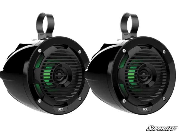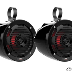 If you already have a stereo system installed in your machine (or plan to get one) and are looking for a way to kick it up a notch, why not add a pair of MTX MUD65PL UTV Speakers with LED Lights? These compact pod speakers secure to nearly any vehicle’s cage and deliver exceptional sound, so you can take the party with you wherever you ride. They’re durable, weatherproof, and stylish.