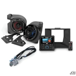 The heart of this system is the media controller. This unit features a 3” all-weather, full-color screen that lets you queue up your music via Bluetooth, auxiliary input, or AM/FM radio. It even has a SiriusXM satellite radio tuner! This kit comes with two 6.5” coaxial speaker pods with integrated RGB lighting.
