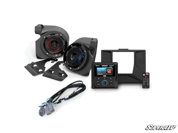 To really bring the party wherever you go, the five-speaker system is a must. You get a pair of cage-mount pod speakers on top of everything that comes with the three-speaker system! The 6.5” RGB coaxial speakers are weather-resistant and offer a full 360 degrees of sound. They securely attach to your frame and sit low enough to avoid branches and other trail hazards.