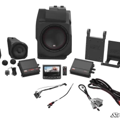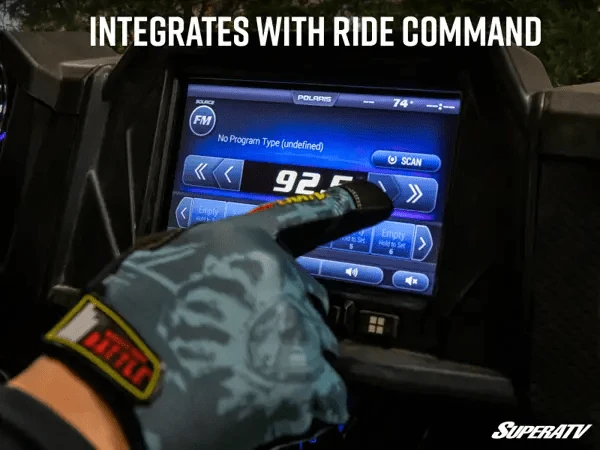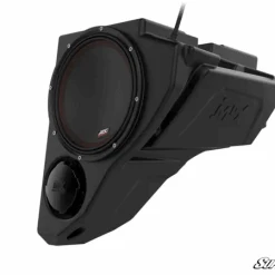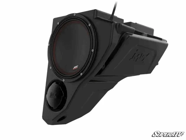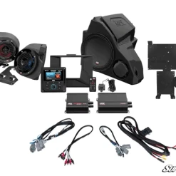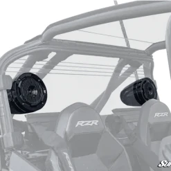 Upgrade to the three-speaker system to get all of that, plus a four-channel amplifier and compact mono-block amp. It also comes with a fully assembled 10” subwoofer with a ported enclosure designed to produce deeper, louder bass. For riders who love driving their RZR through deep water, it comes with a Quick Install Port Seal (QuIPS) cover—just install it over the port opening to make your subwoofer watertight.