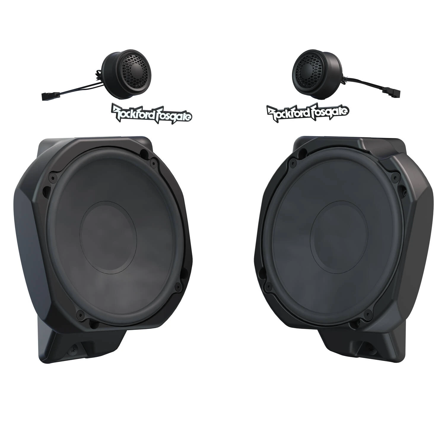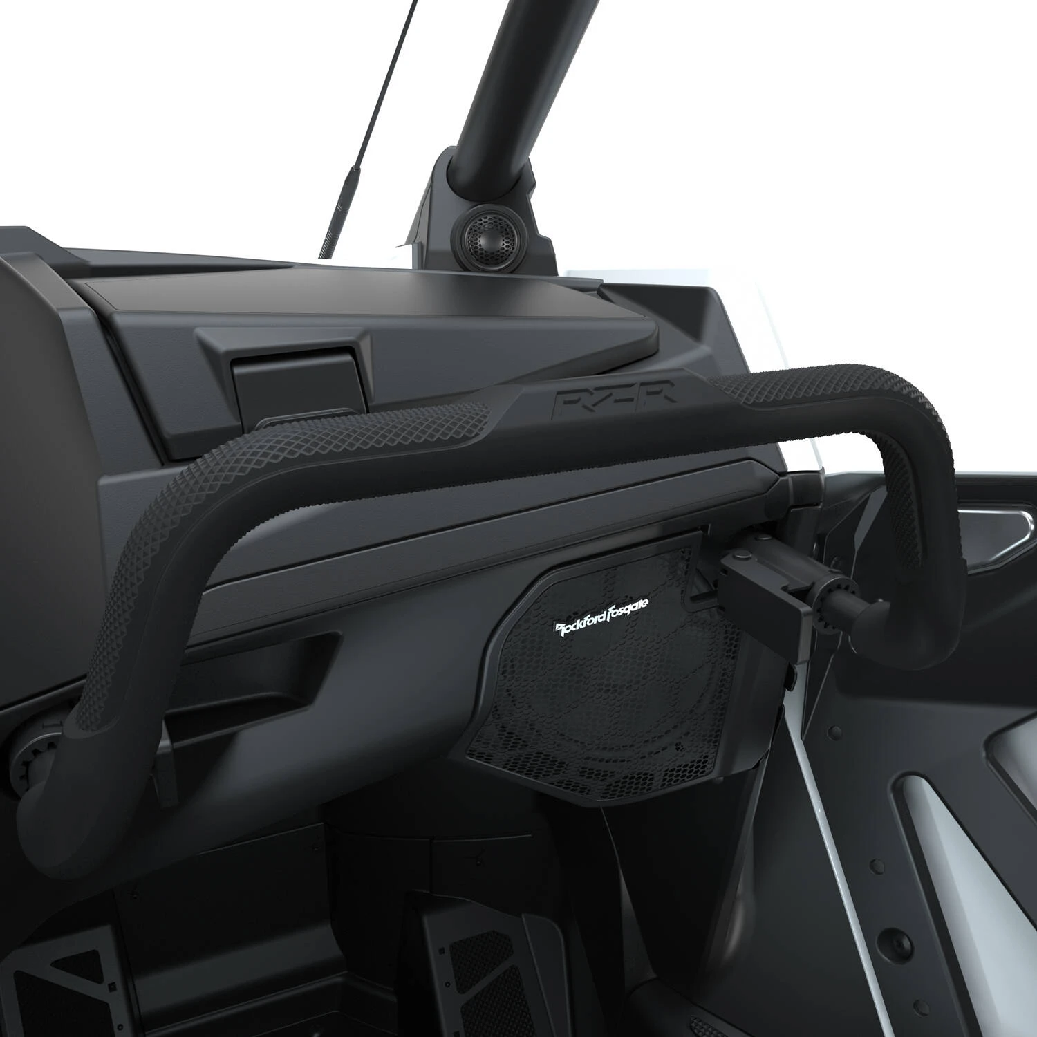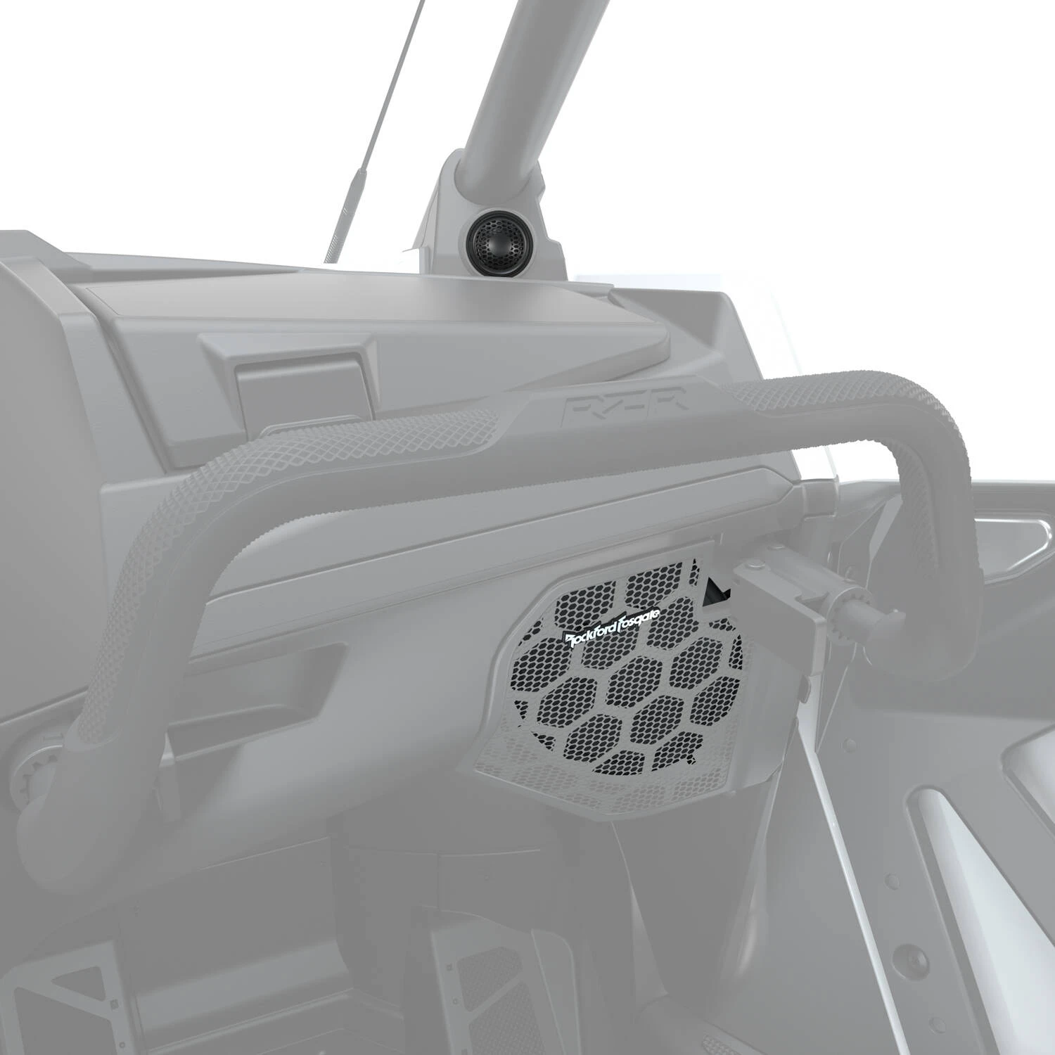 Bring the music to the next level with the Stage 2 Audio Kit by Rockford Fosgate®. Upgrade the sound system in your RZR with the addition of a 400-watt amplifier, 2 in. A-pillar mounted tweeters and 50-watt 6.5 in. mid-driver speakers. This audio kit installs easily to existing mounting points with no drilling or cutting required. The IP67 rated water resistance ensures your audio kit won’t be affected by the outdoor environment.