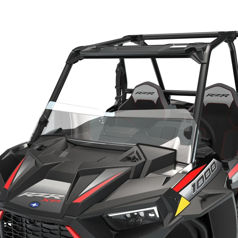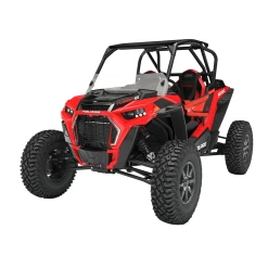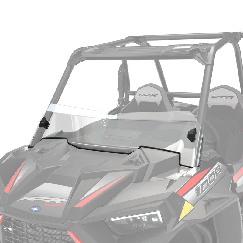 The RZR XP Turbo S Half Windshield was designed to fight off the wind, rocks, and debris. The design shields you from wind and debris like a full windshield but doesn’t collect mud or dirt so you can always see what lays ahead. New and improved Lock & Ride Technology means it installs easily, without hardware or tools- so you can get out and ride sooner.