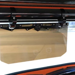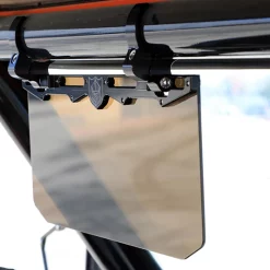 12″ Tinted Aluminum Visor with a 1.75″ clamp providing a dark shield for driving assistance into the sun and to shade as needed. AR coated scratch resistance with black cnc’d satin clamps.