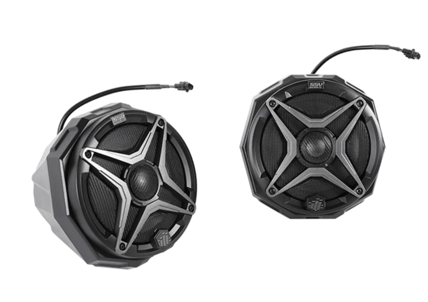 SSV Works Powersports speakers: (US2-C65A) Get louder, cleaner sound even in the dirt and mud. Engineered specifically for Powersports, the new WP-A6 WeatherProof speaker brings audiophile-grade components to the outdoors. The 25mm Ti- tweeter creates crisp brilliant highs engineered to be heard outdoors, even in a helmet…over the motor…haulin’ down the trails. The grille-mounted tweeter allows for peak cone travel creating maximum output while providing a low profile with optimal weatherproofing.