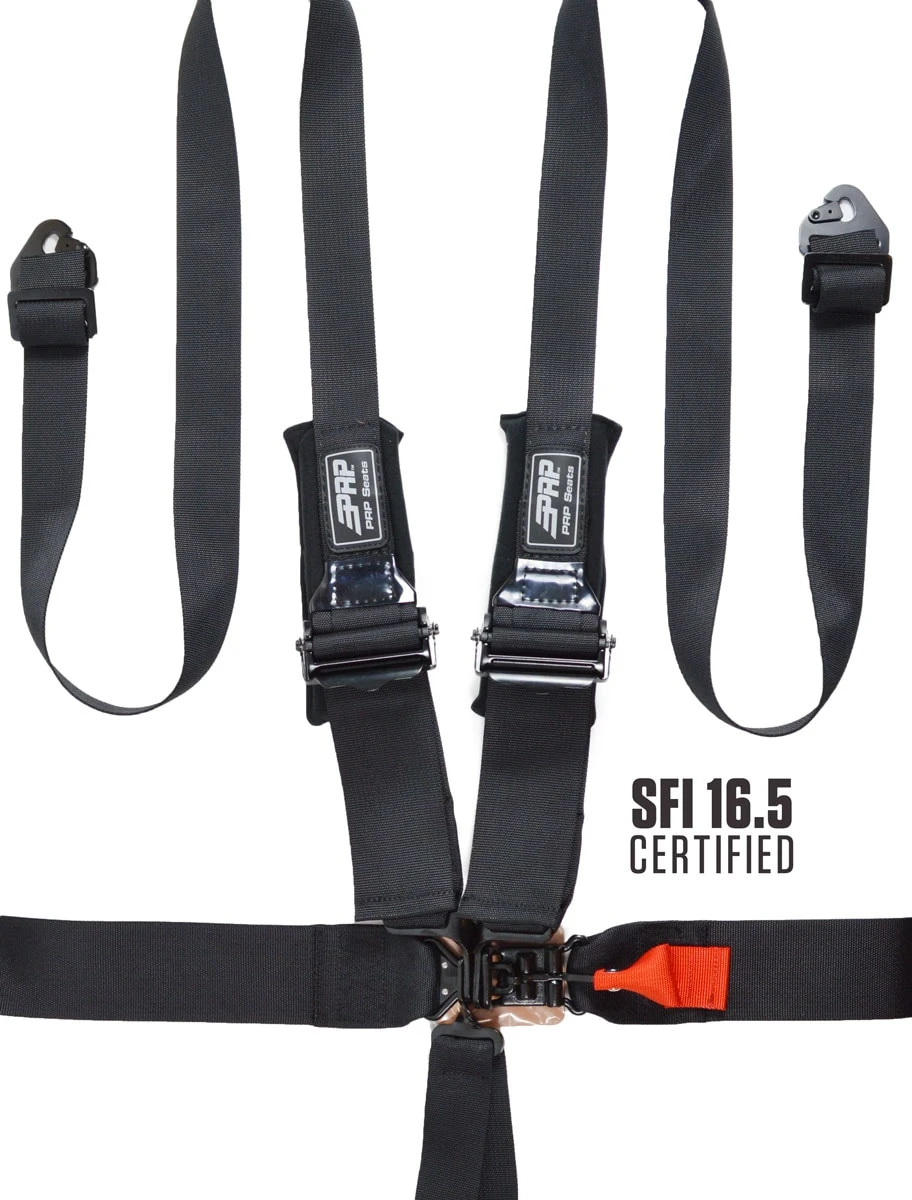 This 3″ lap, 2″ shoulder, 6 point harness gives you all the options you need to install your harness and make it work the way you want it. The pull-up lap belts are adjustable in length allowing you to place PRP’s signature EZ adjusters just where you want them for comfort and convenience. The SFI 16.5 HANS-compatible shoulder straps are over 60″ in length, making them easy to mount with almost any configuration. The red latch guard creates an easy-to-find quick release. All black hardware for a cool look. PRP’s 6.3×2 Harness is a highly recommended choice for those competing in off-road events.