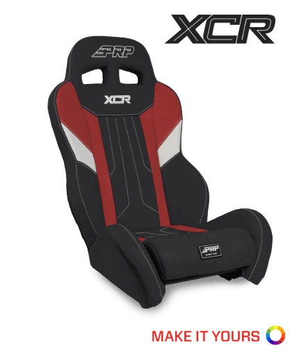 The XCR Suspension Seat is the latest UTV Seat from PRP! New features include a removable seat cushion, a 5th point harness slot, and all-new modern styling. Additional bands allow you to customize the colors and materials of your seat more than ever!