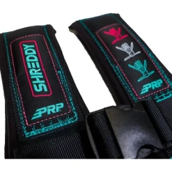 This 5-point harness with 3″ belts matches safety and comfort. The 5-point harness has sewn-in shoulder pads that stop chaffing on the neck and adds extra comfort, especially on long rides off-road. Includes all-black hardware for cool styling. The EZ adjusters allow you to adjust your shoulder straps quickly, even if they are dirty or muddy. Custom Shreddy Teal stitching makes this harness pop.