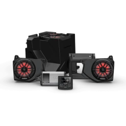 The Ranger Stage-3 is an aftermarket 800-watt M1 Color Optix™ front audio system with subwoofer. This kit upgrades you to the PMX-2 color screen multi-media source unit, featuring Pandora® internet radio. The M5 800-watt 4-channel amplifier has plenty of power to drive the 6.5” front speakers on the front channels and the 10” subwoofer bridged on the rear channels. The system is designed for select 2018 and newer XP 1000 FULL-SIZE (3-seat) and CREW (6-seat) models.