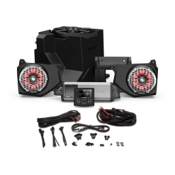 The Ranger Stage-5 is an aftermarket 1,500-watt M2 Color Optix™ front audio system with subwoofer. This kit upgrades all speakers to the M2 Color Optix™ models for the highest sound quality. The multimedia source unit is also upgraded to the PMX-3 featuring a SiriusXM® ready tuner, and component video input for adding a backup camera in the future. The 1,500-watt 5-channel amplifier gives you complete control of the 6.5” front speakers and 10” subwoofer with future expansion for a secondary 10” subwoofer with rear-seats and 6.5” rear speakers. The system is designed for select 2018 and newer XP 1000 FULL-SIZE (3-Seat) and CREW (6-Seat) models.