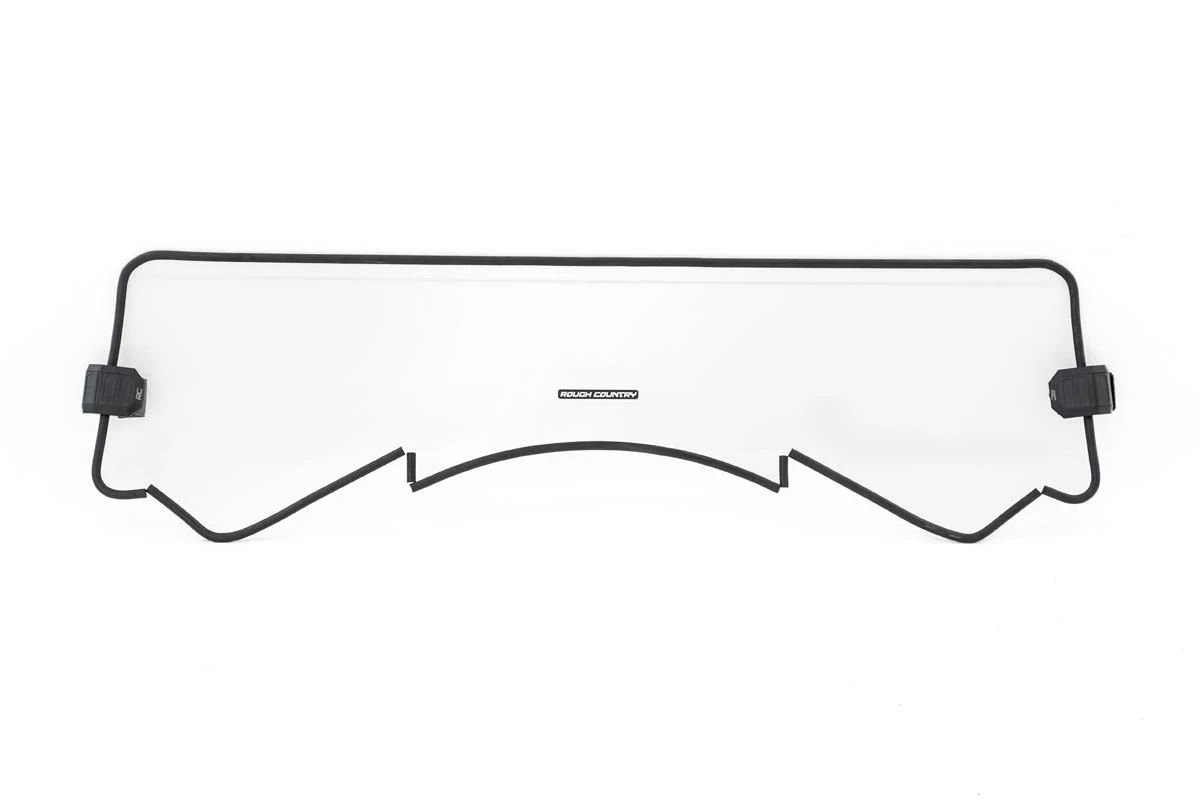 High-Quality Polycarbonate Construction. Rough Country UTV windshields are constructed from thick polycarbonate material that is precision cut for a perfect fit.  The polycarbonate material provides an ideal combination of clarity, flexibility, durability that outperforms glass, acrylic, and other windshield materials.