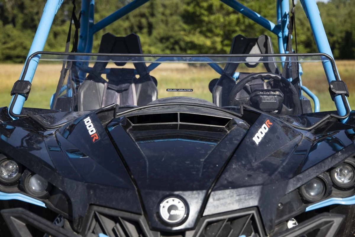 Added Protection and comfortability. Protect the occupants of your Can-Am Maverick from off-road hazards such as rocks, branches, and other debris with Rough Country’s Scratch-Resistant Windshields. UTV Windshields offer a clear visual of the trail ahead and allow for a much more comfortable outing!