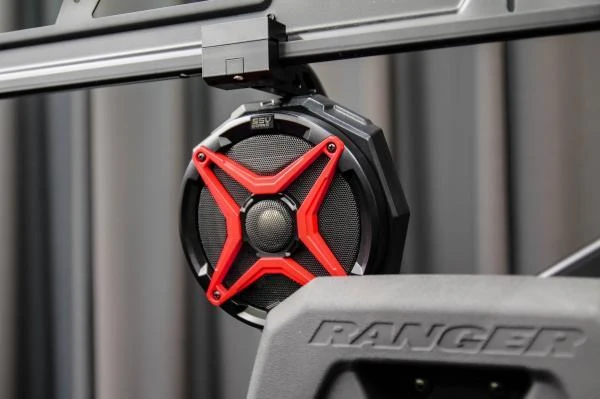 SSV Works custom molded Cage Mount Pods are designed for 6.5″ speakers and can be used when you need more sound in your Side by Side. Unlike wakeboard towers, our mini pods are designed to provide sound to passengers without blocking visibility. They are 100% fiberglass for the best sound quality and bass response. They are finished in a black texture coat to match factory interior textures and can be custom painted to match your color scheme. – Includes a versatile clamping system designed specifically for the Ranger’s rear cage rail, stainless mounting hardware, and step-by-step installation instructions.