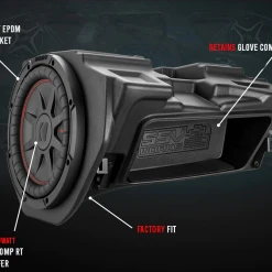 Ride Command:Â Have a RZR with factory audio? This kit allows you to easily add more bass to your system. Simply mount the enclosure and amp under the dash, plug it in to your existing Ride Command system and hit the trail!
