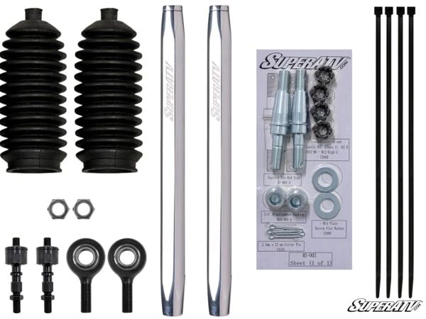 To make your life easier, this kit comes with everything you need to install it and get going. It bolts directly to your SuperATV or stock rack and pinion and the steering knuckle. And if you want to adjust your toe, we’ve got you covered! Whether you’re in the garage or on the go, making adjustments is as easy as loosening the jam nuts and turning the rod.