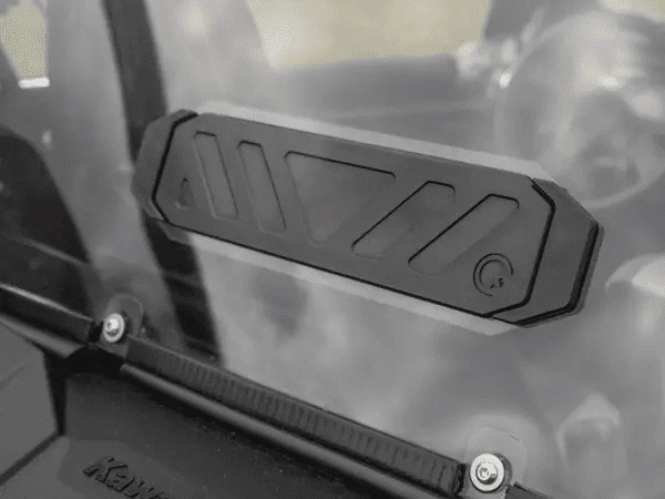 We use 1/4” lightly tinted polycarbonate for this KRX rear window because it’s the toughest windshield material you can get. At 250 times stronger than glass and 25 times stronger than acrylic, you get reliable protection from all the debris your rear tires kick up.