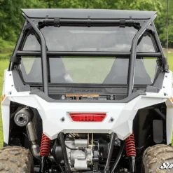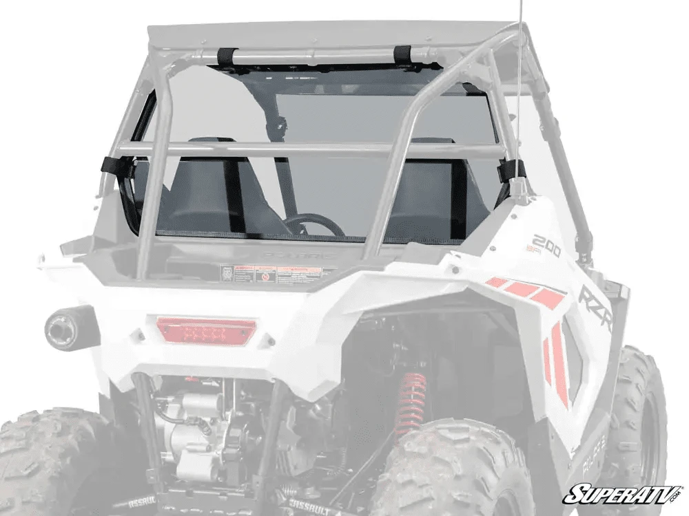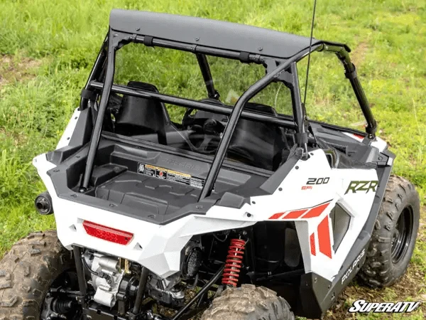 Make sure your child is protected and comfortable by adding SuperATV’s Rear Windshield to your Polaris RZR 200. Regardless if the sun is shining or it’s rained nonstop, a rear windshield helps keep the elements and your own rooster tail out of your cab. Installing a rear windshield to your machine also helps to eliminate the annoying suction you get when running a front windshield alone. It’s lightly tinted too, so you don’t have to worry about the sun’s beating glare.