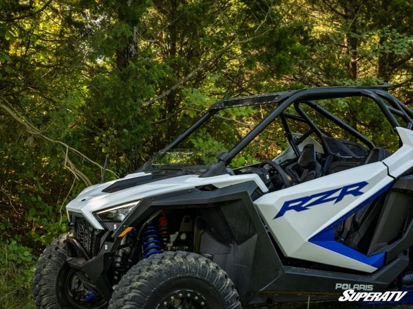 When you’re out for a ride you want that wind in your hair, but maybe not all of it when you’re going 50 MPH through the trail. Install a SuperATV Polycarbonate Half Windshield on your Polaris RZR PRO XP to cut down the wind but keep the open-air feel you love. Our half windshield is designed to keep the full force of the wind out of your face by diverting it up. That means every ride is more comfortable, and you get fewer bugs in your teeth.