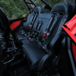 When you take your RZR out on the trail you know the little ones are the pros at adventures so why leave them behind? The RZR 4 PRO Bench Seat allows you to bring more people along for the fun. This Bench Seat is made of black vinyl and has (3) 4-point harnesses with a sewn-in harness pad. The harness also includes a front chest buckle for convenience.