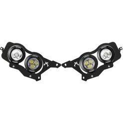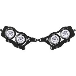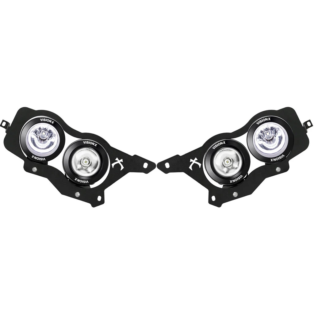 Each headlight houses 2 of our Vision X pod lights that come in either a focused spot beam or broad spot beam pattern as well as a halo option for added lighting style. The pod lights come with an adjustable trunnion bracket that allows for light angle adjustments up and down as well as side to side so you can aim the light where you need it most.